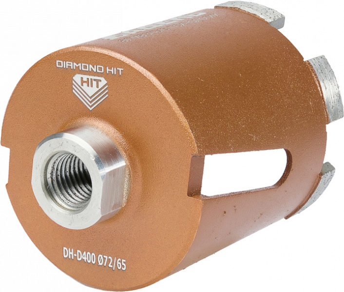 | Характеристики / Алмазная коронка для подрозетников | Стандартная (Адель, Hilti, Dr. Schulze, Cedima, Keos, Diam, Messer, Ниборит, Зубр, Практика и т.д.) | Адель Diamond Hit DH-D400 72/65 мм |
