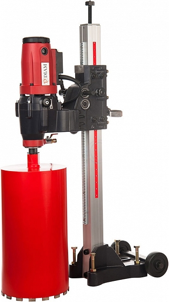 Алмазная установка для бурения отверстий Diam CSN-355N (Диам ЦСН-355Н) – профессиональная сверлильная машина для быстрого и качественного сверления различных отверстий в бетоне, железобетоне, кирпиче и других твердых материалах Ø 25 – 355 мм под прямым углом и с постоянной подачей воды. Используется при электромонтажных и строительных работах, монтаже и демонтаже зданий, реконструкции помещений, прокладке трубопроводов и инженерных сетей и т.д.