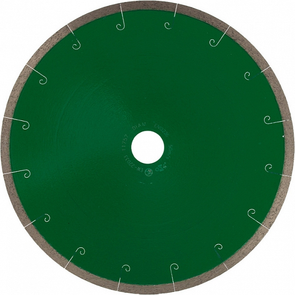 Алмазный отрезной круг Diam Extra Line 1A1R Корона Granite-Elite 230 мм (Диам Экстра Лайн 1А1Р Корона Гранит-Элит 230 мм) – премиальный алмазный диск для мокрой резки гранита, керамогранита, твердой керамики, кварцевого агломерата, оникса, мрамора, габбро, лабрадорита, базальта и других пород твердого натурального камня на болгарках (ушм), штроборезах, бензорезах, электрических резчиках и плиткорезах, стенорезных машинах с подачей воды. За долгое время зарекомендовал себя с отличной стороны у многих мастеров, как инструмент, обеспечивающий очень качественное выполнение задач практически по всем твердым материалам, при этом имеет очень большой ресурс и скорость работы.
