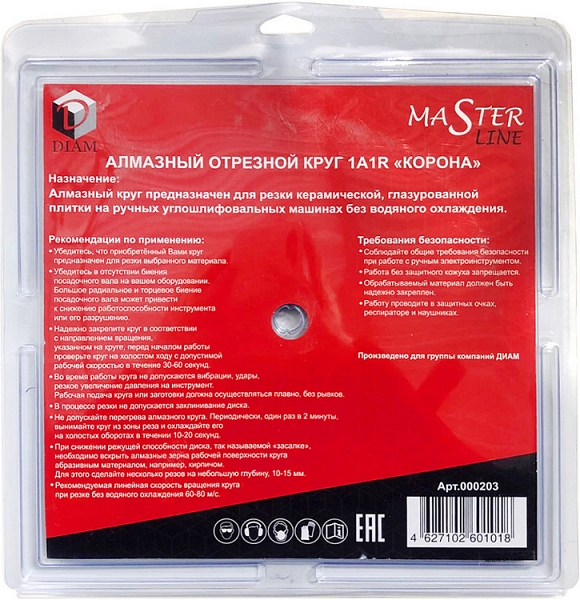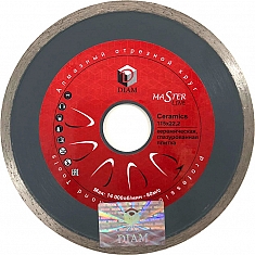Алмазный отрезной круг Diam Master Line 1A1R Корона Ceramics 115 мм (Диам Мастер Лайн 1А1Р Корона Керамикс 115 мм) – универсальный алмазный диск со сплошной режущей кромкой для резки керамической и глазурованной плитки ручными углошлифовальными машинами (ушм, болгарками) без подачи воды при проведении отделочных работ.