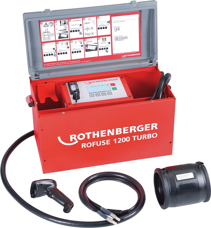 Аппарат для электромуфтовой сварки с протоколированием Rothenberger Roweld Rofuse 1200 Turbo (Ротенбергер Ровелд Рофьюз 1200 Турбо) – универсальный электромуфтовый сварочный аппарат для электромуфтовой сварки ПЭ, ПНД и ПП фитингов Ø 32 – 1200 мм сварочным напряжением 8 – 48 В и сварочной силой тока 80 А, идеально подходит для использования на строительных площадках.