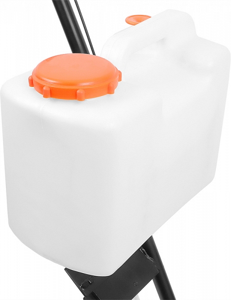 – За эргономину отвечают прорезиненая рукоятка, резиновый брызговик, дополнительно защищающий оператора и быстрая бесключевая настройка высоты рукоятки под любой рост оператора