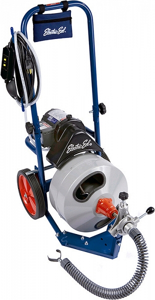 Электрическая прочистная машина с автоподачей Electric Eel Z5K-1/2IC100-AF (Электрик Ил З5К-1/2ИЦ100-АФ) – электромеханический прочистной аппарат барабанного типа с автоматической подачей прочистной спирали для прочистки канализационных труб Ø 32 – 75 мм (1 1/4" – 3") на максимальную длину до 30 м. Применяется при пробивке засоров и очистке труб от жировых, иловых, твердых отложений, корней, тряпок, бутылок и других видов засоров. Поставляется на удобной тележке с большими колесами для удобства маневрирования и транспортировки.