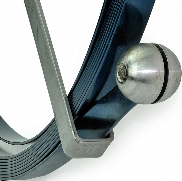 - Рукоятка и острие (копьевидный наконечник) на одном конце и вращающийся шарик (шариковый наконечник) на другом