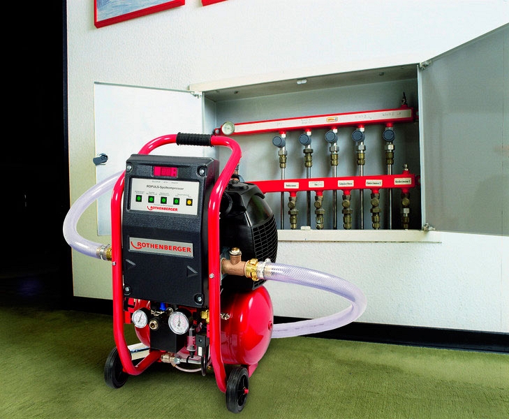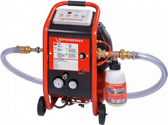 Компрессор для промывки Rothenberger Ropuls (Ротенбергер Ропульс) предназначен для промывки пульсирующей водно-воздушной смесью водопроводов, в том числе с питьевой водой, систем отопления (подогрева) пола, водонагревателей, радиаторов и т.д., а также прочистки химическими веществами.