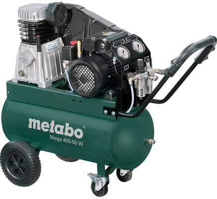 Мощный поршневой компрессор Metabo Mega 400-50 W (Метабо Мега 400-50 В) с ременной передачей и масляной смазкой предназначен для использования в сложных условиях.