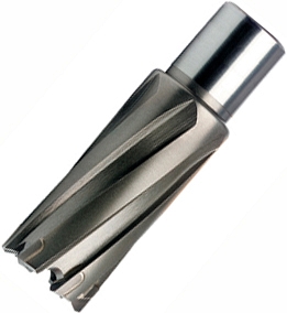 - Более длительный срок службы: менее восприимчиво к разрушению, чем кольцевая фреза из быстрорежущей стали HSS (High Speed Steel), особенно при сверлении отверстий больших диаметров и большой глубины