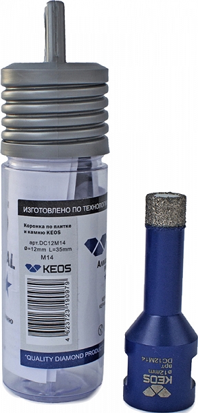 Цена и технические характеристики коронки алмазной по керамограниту Keos Professional Vacuum Brazed M14 12 мм: