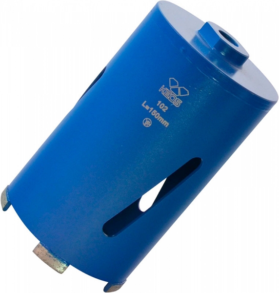 Коронка по бетону для перфоратора Keos 102 мм (Кеос 102 мм) предназначена для сухого сверления отверстий Ø 102 мм в бетоне, газобетоне, кирпиче и прочих материалах, используемых для возведения стен, в том числе и армированном бетоне (железобетоне), с использованием перфоратора или мощной ручной дрели. Идеально подходит для работы в помещениях с чистовой отделкой, без труда проходит стены и перекрытия для проводки коммуникаций электропроводки, водоснабжения, вентиляции и т.д. без лишней пыли и грязи.