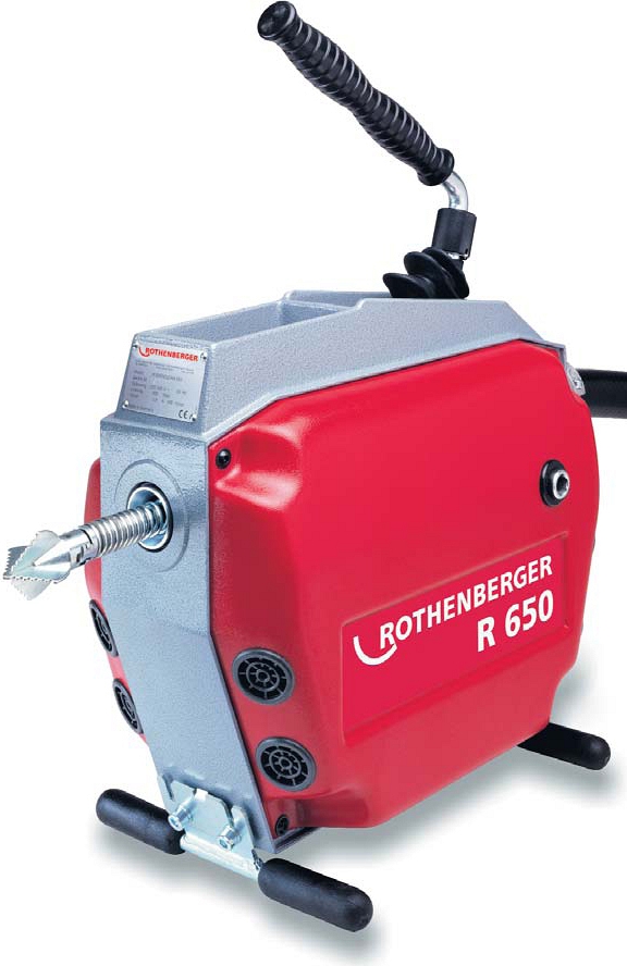 Машина для прочистки труб Rothenberger R 650 (Ротенбергер Р 650) – электрическая прочистная машина секционного типа, предназначенная для мобильной профессиональной прочистки труб Ø 20 – 150 мм на максимальную рабочую длину до 65 м. Отличается ровным ходом и мощностью даже при резке проросших корней, цемента и известковых отложений.