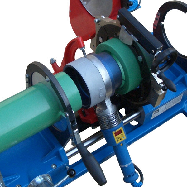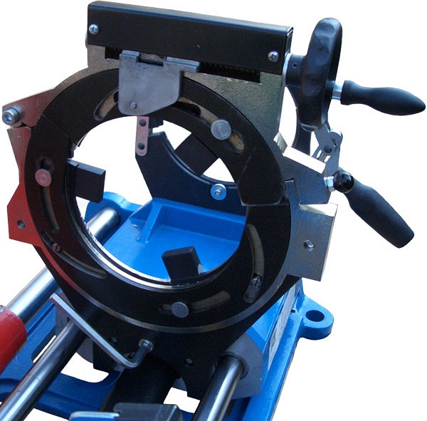 – Для выполнения раструбной сварки вместо одного из трубных зажимных хомутов устанавливается универсальный зажим для фитингов.
