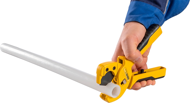 - Специально закаленное и отшлифованное лезвие клиновидной формы с углом резания 110°, с покрытием из PTFE, идеально подходит для резки шлангов и мягких пластмассовых труб