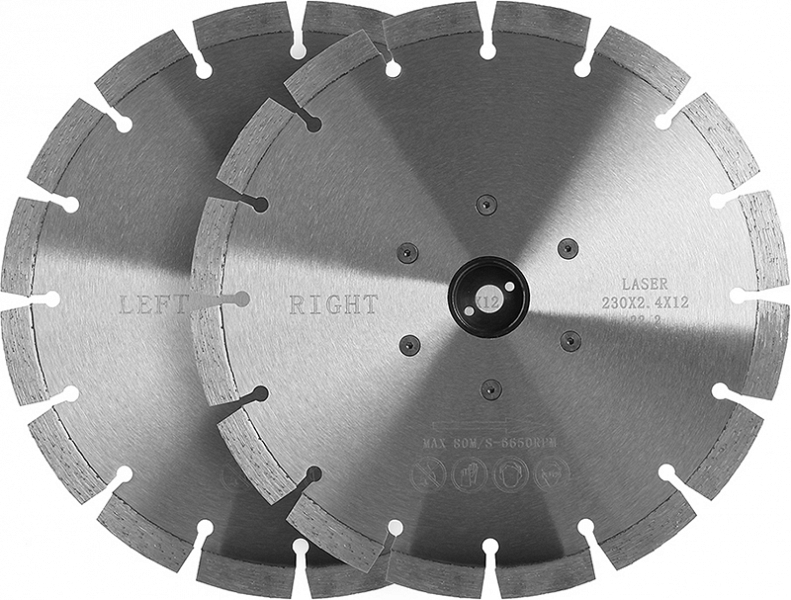 Правый алмазный диск Messer Cut-n-Break Right 230 мм (Мессер Кат-н-Брик Райт 230 мм) предназначен для установки на бензорез Husqvarna K 760 Cut-n-Break и электрические резчики Husqvarna K 4000 Cut-n-Break, K 3000 Cut-n-Break, для сухой резки высокоармированного бетона (железобетона) без подачи воды.
