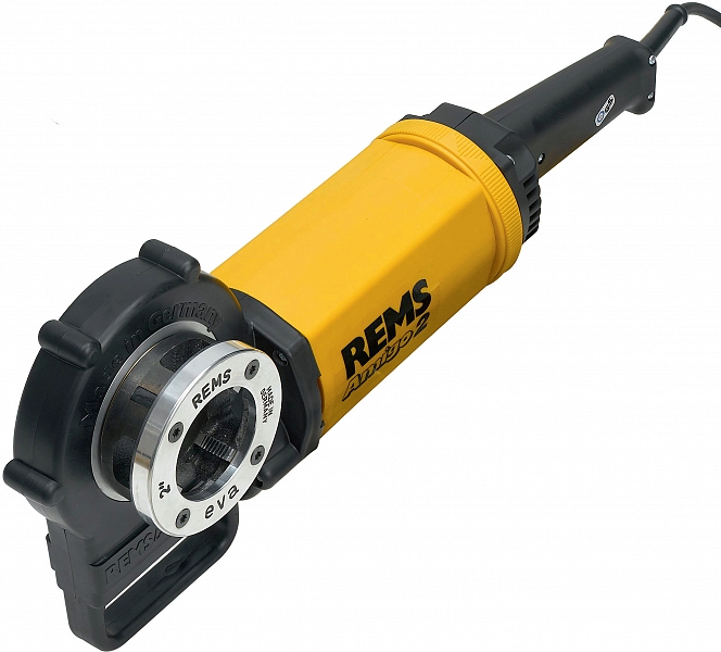 - Rems Амиго 2 Сет. Электрический резьбонарезной клупп со сменными головками для трубной резьбы 1/8" – 2", 16 – 50 мм, болтовой резьбы 6 – 30 мм, 1/4" – 1". Для правой и левой резьбы. Привод, не требующий технического обслуживания редуктор, надежный, мощный, универсальный двигатель 230 В, 50 – 60 Гц, 1700 Вт, толчковый выключатель безопасности, увеличение мощности посредством автоматической перестановки угольных щеток. При выборе направления вращения, правый / левый ход. Опорный бугель для обоих направлений вращения. С быстросменными резьбонарезными головками Rems Ева для конической резьбы ISO 7-1, EN 10226 (DIN 2999, BSPT) R правой и для резьбы на электроизоляционных трубах, согласно EN 60423 М). В прочном стальном чемодане.