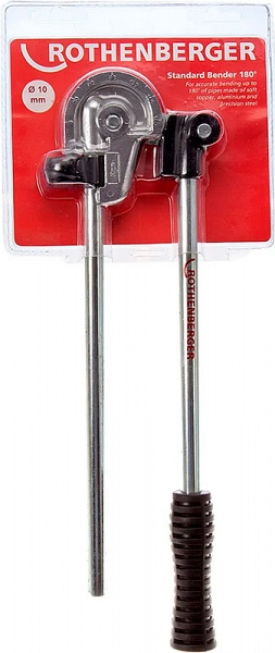 Ручной рычажный трубогиб Rothenberger 16 мм (5/8") (Ротенбергер 16 мм (5/8")) предназначен для точной холодной гибки двумя руками алюминиевых, мягких медных и тонкостенных стальных труб Ø 16 мм (5/8") на угол до 180° в мастерских и на стройплощадках при монтаже разнообразных систем пневматики и гидравлики, вентиляции и кондиционирования, а также в машиностроении и холодильной технике.