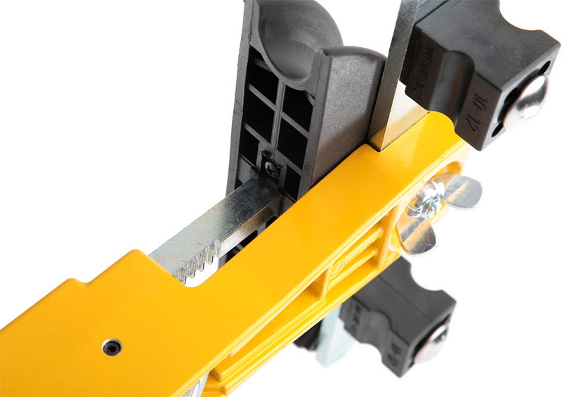 Ручной трубогиб арбалетного типа Rems Swing Set 12-14-16-18-22 мм (Ремс Свинг Сет 12-14-16-18-22 мм) – практичный арбалетный трубогиб арбалет с храповым механизмом для точной гибки мягких медных труб, в том числе тонкостенных труб Ø 10 – 22 мм (3/8" – 7/8"), толщиной стенки до 1 мм; мягких медных труб в оболочке Ø 10 – 18 мм (3/8" – 5/8"), толщиной стенки до 1 мм; мягких труб из углеродистой стали с оболочкой систем запрессовки Ø 12 – 18 мм (1/2" – 3/4"), толщиной стенки до 1,2 мм; прецизионных мягких стальных труб Ø 10 – 18 мм (3/8" – 5/8"), толщиной стенки до 1 мм; металлопластиковых труб Ø 14 – 32 мм, на угол до 90°, одной рукой. Идеален для работ на месте монтажа. Для мастерских и промышленности. Для стройплощадки и мастерской.