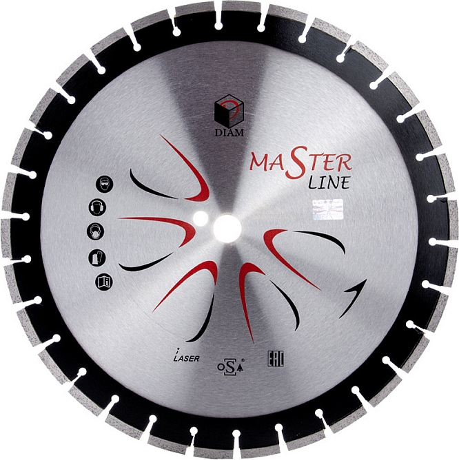 Сегментный алмазный круг Diam Master Line 1A1RSS Асфальт 450 мм (Диам Мастер Лайн 1А1РСС Асфальт 450 мм) – специальный алмазный отрезной диск с лазерной сваркой сегментов для сухой и мокрой резки асфальта, асфальтобетона, пенобетона, абразивного песчаника, кирпича и других абразивов на резчиках швов, стенорезных машинах, камнерезных станках, как с подачей воды, так и без нее.