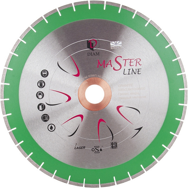 Сегментный алмазный круг Diam Master Line 1A1RSS Гранит 500 мм (Диам Мастер Лайн 1А1РСС Гранит 500 мм) – специальный сегментный алмазный отрезной диск для сухой и мокрой резки гранита, кварца, клинкера, твердых песчаников на камнерезных станках, стенорезных машинах, швонарезчиках и другом оборудовании, как с подачей, так и без подачи охлаждающей жидкости.