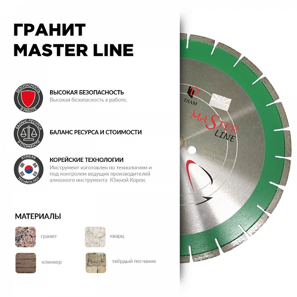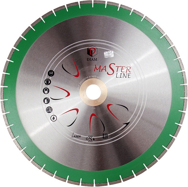 Сегментный алмазный круг Diam Master Line 1A1RSS Гранит 600 мм (Диам Мастер Лайн 1А1РСС Гранит 600 мм) – специальный сегментный алмазный отрезной диск для сухой и мокрой резки гранита, кварца, клинкера, твердых песчаников на камнерезных станках, стенорезных машинах, швонарезчиках и другом оборудовании, как с подачей, так и без подачи охлаждающей жидкости.