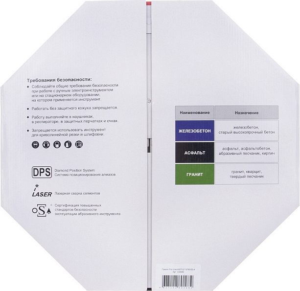 - Для бензорезов и электрических резчиков: подходит для использовании на ручных бензорезах и электрических резчиках (возможно потребуется установка через переходное кольцо, в комплект не входит)