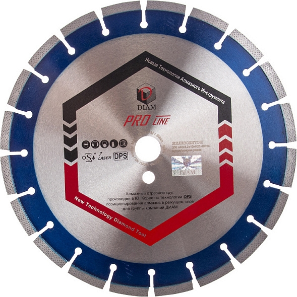Сегментный алмазный круг Diam Pro Line 1A1RSS Железобетон 300 мм (Диам Про Лайн 1А1РСС Железобетон 300 мм) – профессиональный алмазный отрезной диск с лазерной сваркой сегментов, произведенный по технологии DPS – позиционирования алмазов в режущем слое, для сухой и мокрой резки железобетона, старого высокопрочного бетона, огнеупоров на бензорезах, электрических резчиках и плиткорезах, камнерезных станках, стенорезных машинах, швонарезчиках, как с охлаждением, так и без.