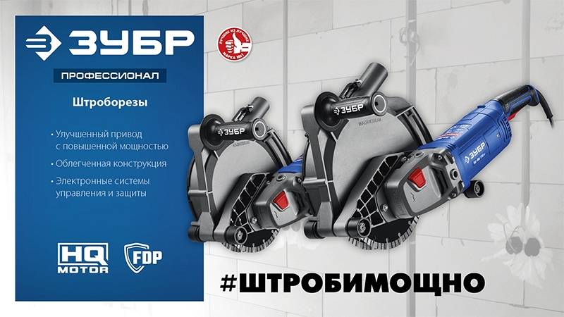 Преимущества штробореза Зубр Профессионал ЗШ-П45-2200 ПТК: