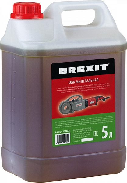 СОЖ минеральная Brexit 5 л (Брекзит 5 л) – смазочно-охлаждающая жидкость на минеральной основе для резьбонарезных станков и клуппов, сверлильного, режущего и гибочного оборудования.