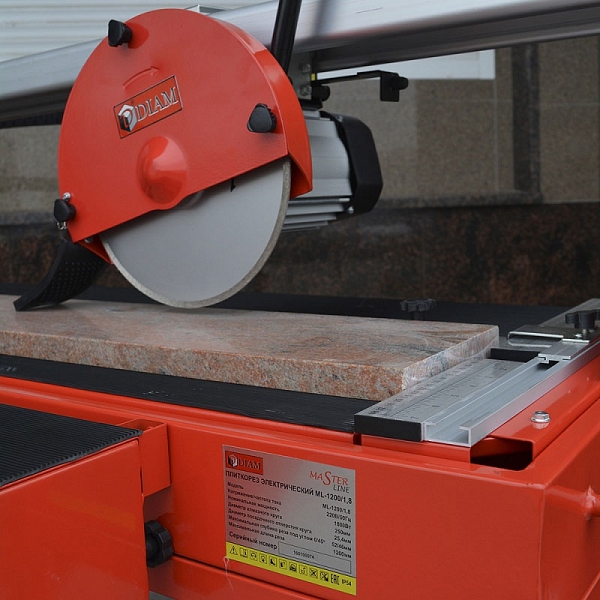 Модель снята с производства! Станок для резки плитки с водой Diam ML-1200/1.8 (Диам МЛ-1200/1.8) серии Master Line предназначен для резки керамогранита, мрамора, гранита, керамической и облицовочной плитки и других отделочных материалов длиной до 1230 мм (диагональный рез до 850 мм), толщиной до 52 мм под углом 90 градусов, толщиной до 46 мм под углом до 45 градусов.