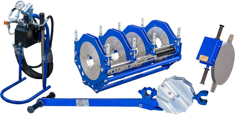 – Возможность работы по схеме 2+2 (два подвижных и два неподвижных хомута) и по схеме 3+1 для сварки фитингов, отводов, Y-образных отводов, тройников, крестовин, соединив 2 и 3 хомут при помощи перекидной планки