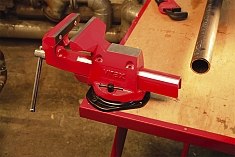 Тиски слесарные настольные с наковальней Virax 105 мм (Виракс 105 мм) – комбинированные трубные и параллельные (с параллельными зажимными губками), верстачные, поворотные (с дополнительным поворотным основанием) стальные слесарные тиски для фиксации труб Ø 1/2" – 1 1/4", а также изделий и заготовок другой формы.
