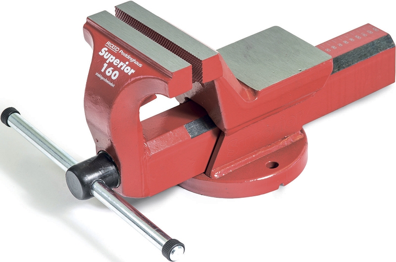 Модель снята с производства! Тиски слесарные стальные поворотные с наковальней Ridgid Peddinghaus Superior 160 (Риджид Педдинхаус Супериор 160) – профессиональные комбинированные трубные и слесарные настольные верстачные тиски для монтажных работ. Отличаются наличием встроенных трубных тисков, расположенных под основными губками тисков, для работы с трубами Ø 1/2" – 4". Известны своим качеством и долговечностью. Производят в Германии уже свыше 100 лет.