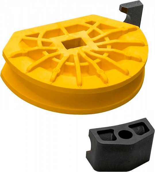 - Гибочные сегменты и упоры скольжения 180°, прочные и стойкие к деформации, из высокопрочного, усиленного стекловолокном полиамида. Оптимальное согласование гибочного сегмента и упора обеспечивает скольжение в соответствии с материалом без образования гофры и заломов. Шкалы угла на каждом сегменте и маркировка на каждом упоре для более точного изгиба. Быстрая смена насадок.
