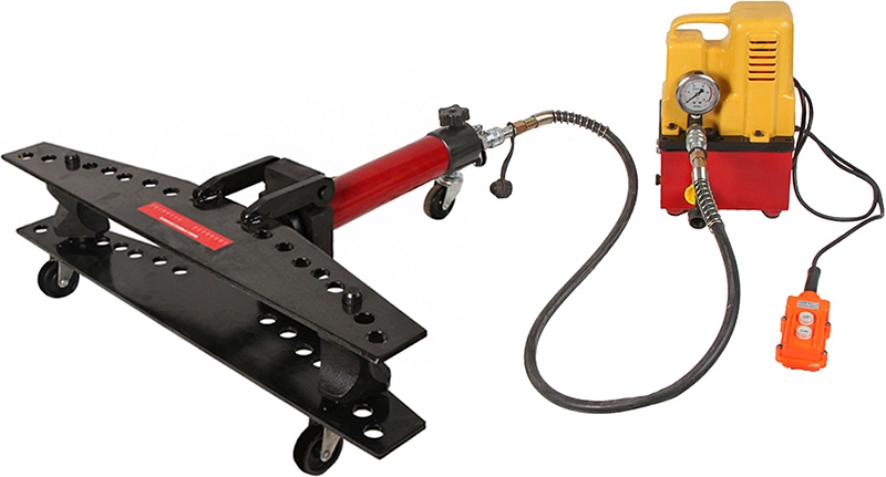 Трубогиб электрогидравлический Voll V-Bend 3E (Волл В-Бенд 3Е) предназначен для гибки водопроводных и газопроводных стальных труб Ø 1/2", 3/4", 1", 1 1/4", 1 1/2", 2", 2 1/2", 3" под углом до 90°. Используется при монтаже систем водоснабжения, газоснабжения, отопления, а также в других областях производства, где применяются стальные трубы.