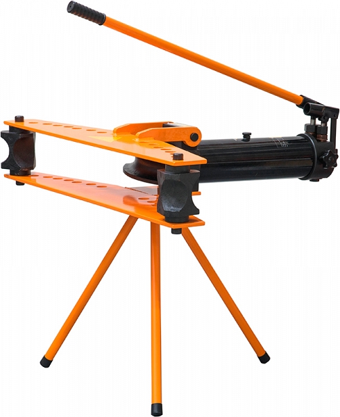 - Тип: ручной гидравлический (продавливает заготовки при помощи гидравлической направляющей) – отличен от других вариантов ручных трубогибов тем, что его привод усилен гидравликой, что позволяет монтажнику прикладывать меньше усилий и тратить гораздо меньше времени при гибки стальных труб