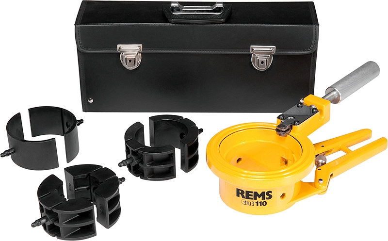 - Rems Cut 110 Cu-Inox Set 60+80+100+110. Труборезный станок для резки сварных сточных / спускных труб из меди, сплава титана и цинка, нержавеющей стали (EN 1124), Ø 60, 80, 100, 110 мм. Быстросменное оборудование Ø 110 мм с зажимным устройством. Набор инструмента Cu-Inox с режущим диском Cu-Inox 3-120, s 4. В прочном чемодане.