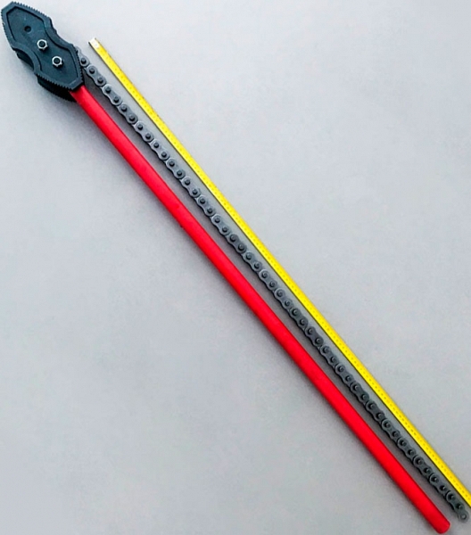 - Прочная цепь из специальной стали c улучшенной термообработкой подгоняется под трубы всех указанных диаметров