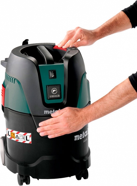Универсальный строительный пылесос Metabo ASA 25 L PC (Метабо ACA 25 Л ПС) с ручной очисткой фильтра и промышленным допуском предназначен для влажной / сухой уборки, обеспечения вытяжки от электроинструментов и очистки стройплощадки, мастерской и т. д.