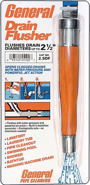 Устройство для промывки канализационных труб General Pipe Cleaners Drain Flusher 1.5DFH (Дженерал Пайп Клинерс Дрейн Флашер 1.5ДФХ) предназначено для прочистки струей воды засоренных канализационных труб Ø до 40 мм (1 1/2").