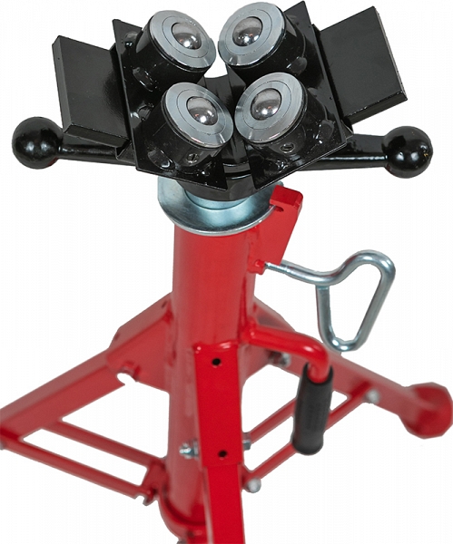 V-образная четырехроликовая складная регулируемая опора для труб Remmers Atlant 1/8-12 (Реммерс Атлант 1/8-12) предназначена для работы с трубами Ø 3 – 300 мм (1/8" – 12"). Широко используется при сварке тяжелых, фасонных, твердых и круглых труб; для поддержки труб во время накатывания желобков, нарезания резьбы, резки, снятия фаски, вырезания отверстий и т.д.