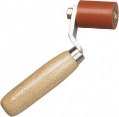 Валик прижимной однорычажный угловой на подшипниках Forsthoff 45 мм (Форстхофф 45 мм) – ролик прикаточный силиконовый шириной 45 мм с углом поворота 45°, предназначенный для прикатки слоев полимерных пленок, баннерных и тентовых тканей, кровельных мембран при их ручной сварке внахлест горячим воздухом.